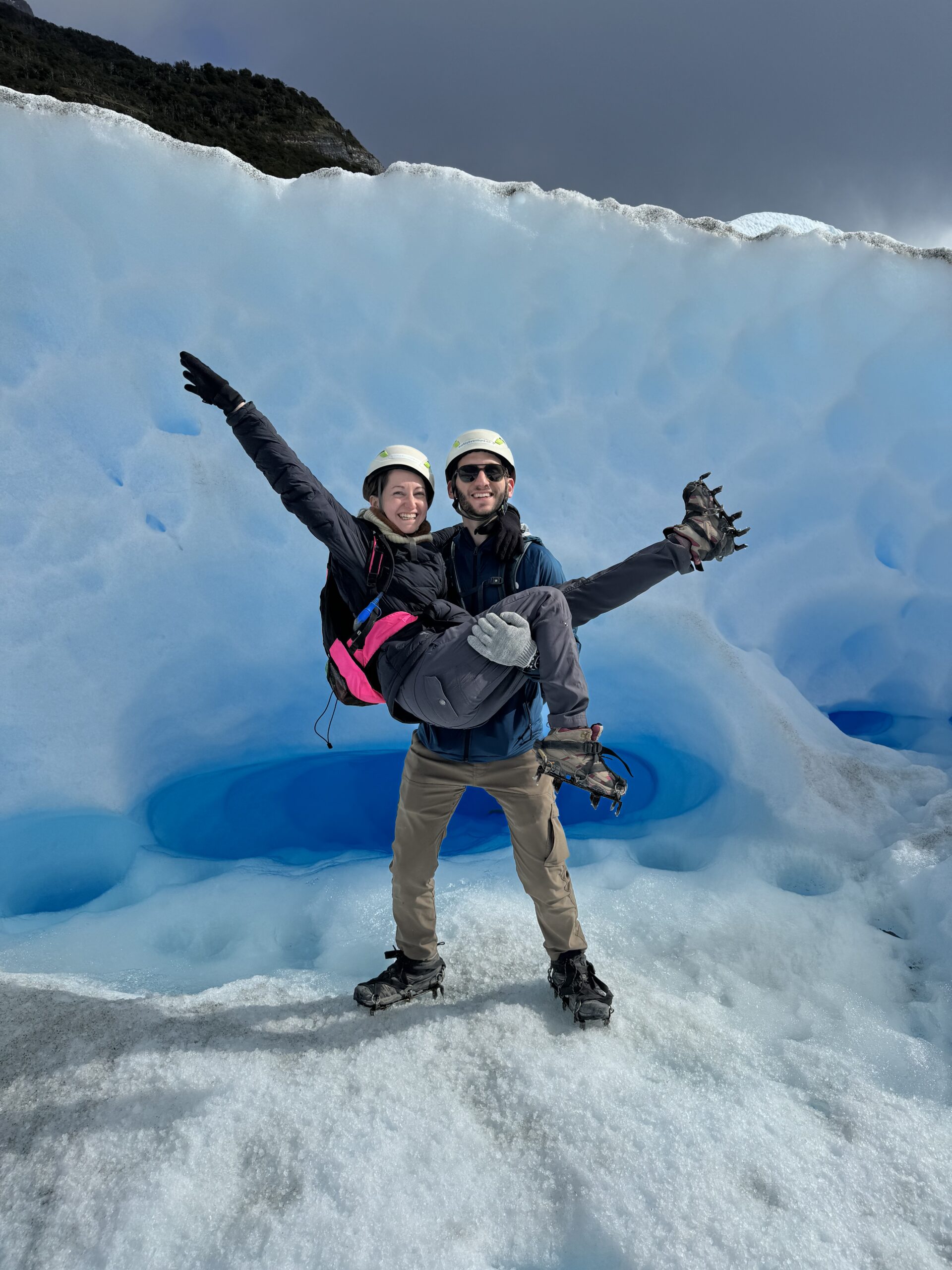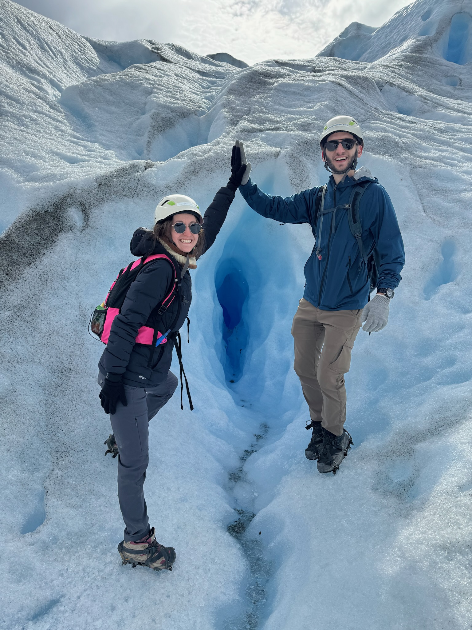 Most tourists go to El Calafate to see the Perito Moreno Glacier. You can see it on the walkways (still need to pay an entrance fee into the park but the walkways are covered in this), but in our opinion the ice trek was SO worth the money. We did the mini-trek 2, which was a new trek added in 2024 by Hielo y Aventura (the original mini trek takes you on the boat, then you hike defined trails on the glacier for an hour and then you get a shot of whisky on the ice). The new mini-trek 2 didn’t have defined trails – we made our own – and gave us an extra time walking the glaciers. We didn’t have shots on the ice, but rather on the boat ride back, and thought it was a much better option. For the even more adventurous, you could do the Big Trek, which was more money and 5-6 hours on the ice, but quite frankly, the 3 hours we spent felt more than sufficient for the experience.