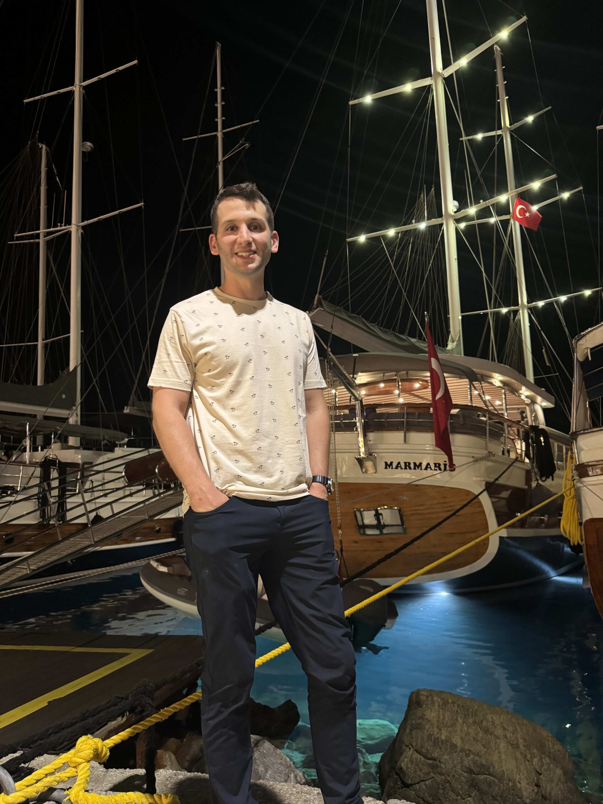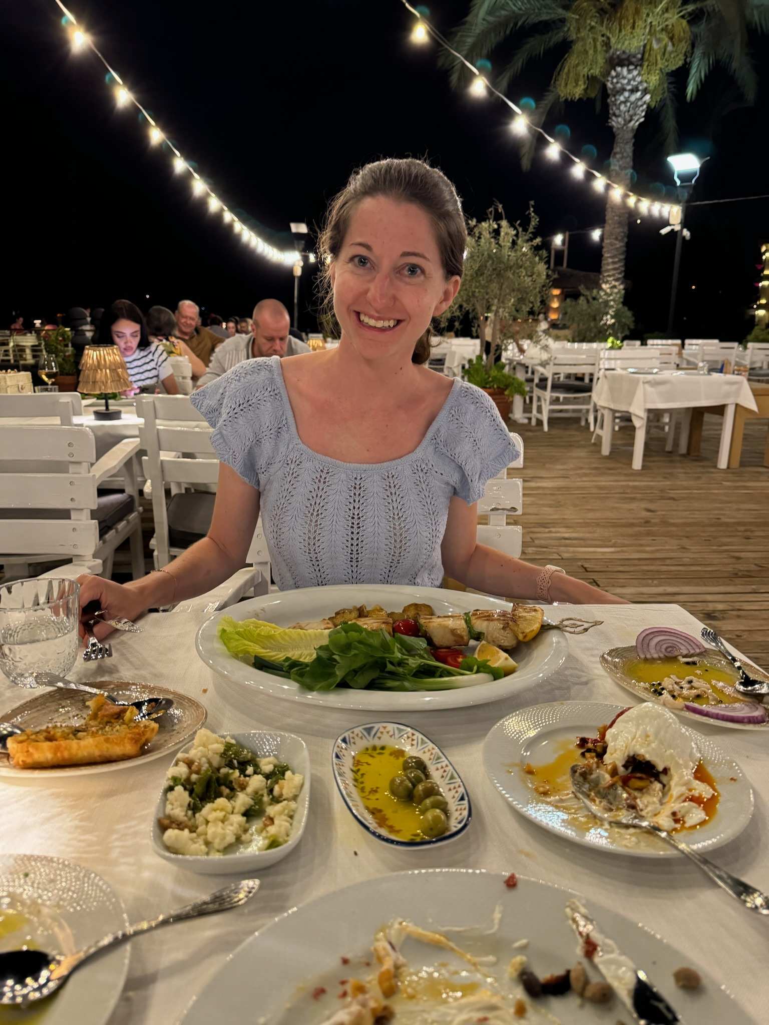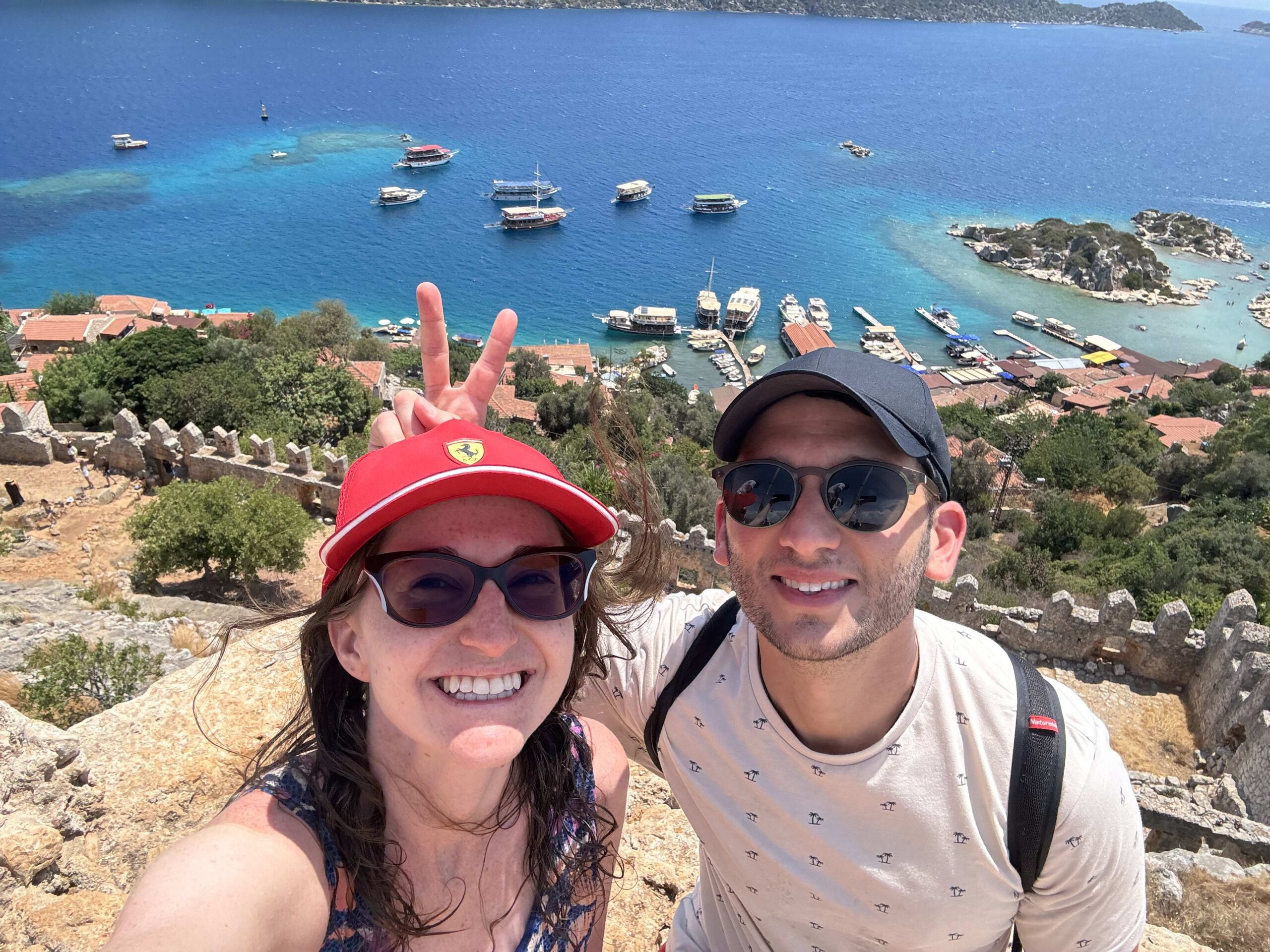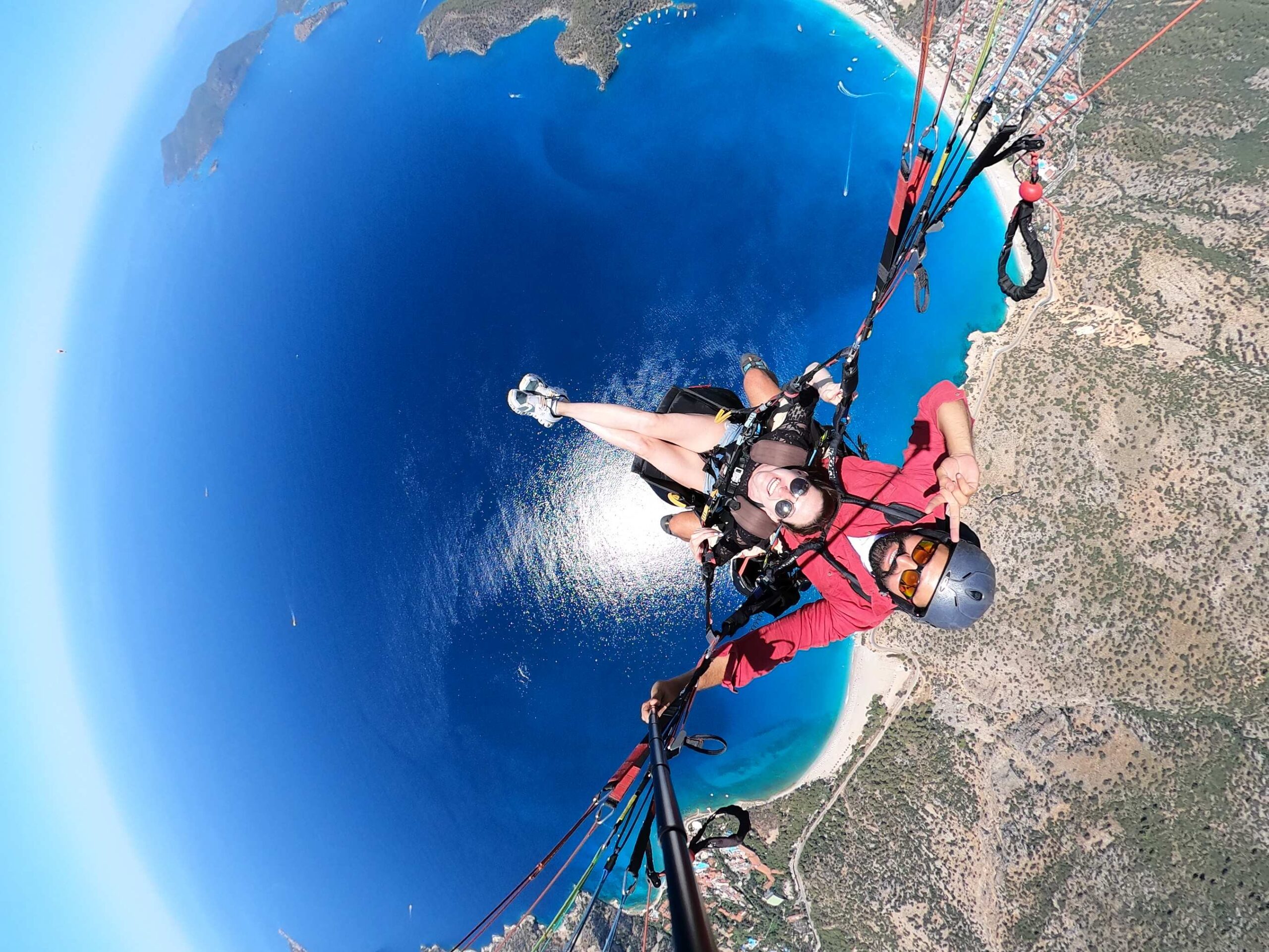 On day 2, my favorite day of the entire trip, we went to Ōlüdeniz Beach/blue lagoon. We started the day paragliding over the beach to get an aerial view. For my 21st, I went skydiving, so this seemed appropriate for my 35th- slightly less subdued, but still plenty of adrenaline. After a steep 30 minute drive up the mountain, I believe I was the first from our group to run down and leap off. Luckily I barely had time to process what I was doing. The long 25-30 minute flight was both frightening and deeply relaxing, a combination I hadn’t experienced before. My tandem instructor asked me if I wanted an extra burst of adrenaline, to which I obviously said yes. The speed at which he turned me around and then landed were by far the scariest part of the flight, but all.. still worth it. Because Evan’s tandem paraglider didn’t take off at the exact same time, poor Evan had to stand up and look at where he was going to run for the next 20 minutes, waiting for the wind to be “just right” to ensure the best conditions.