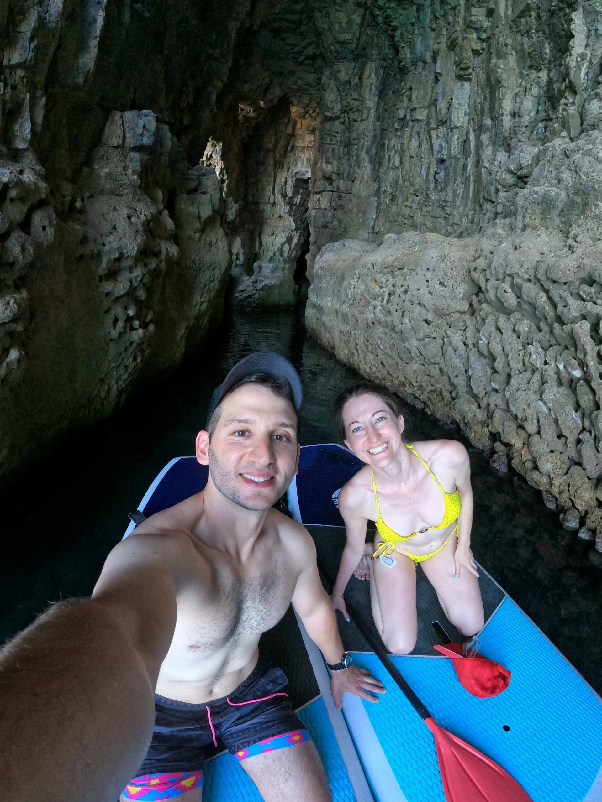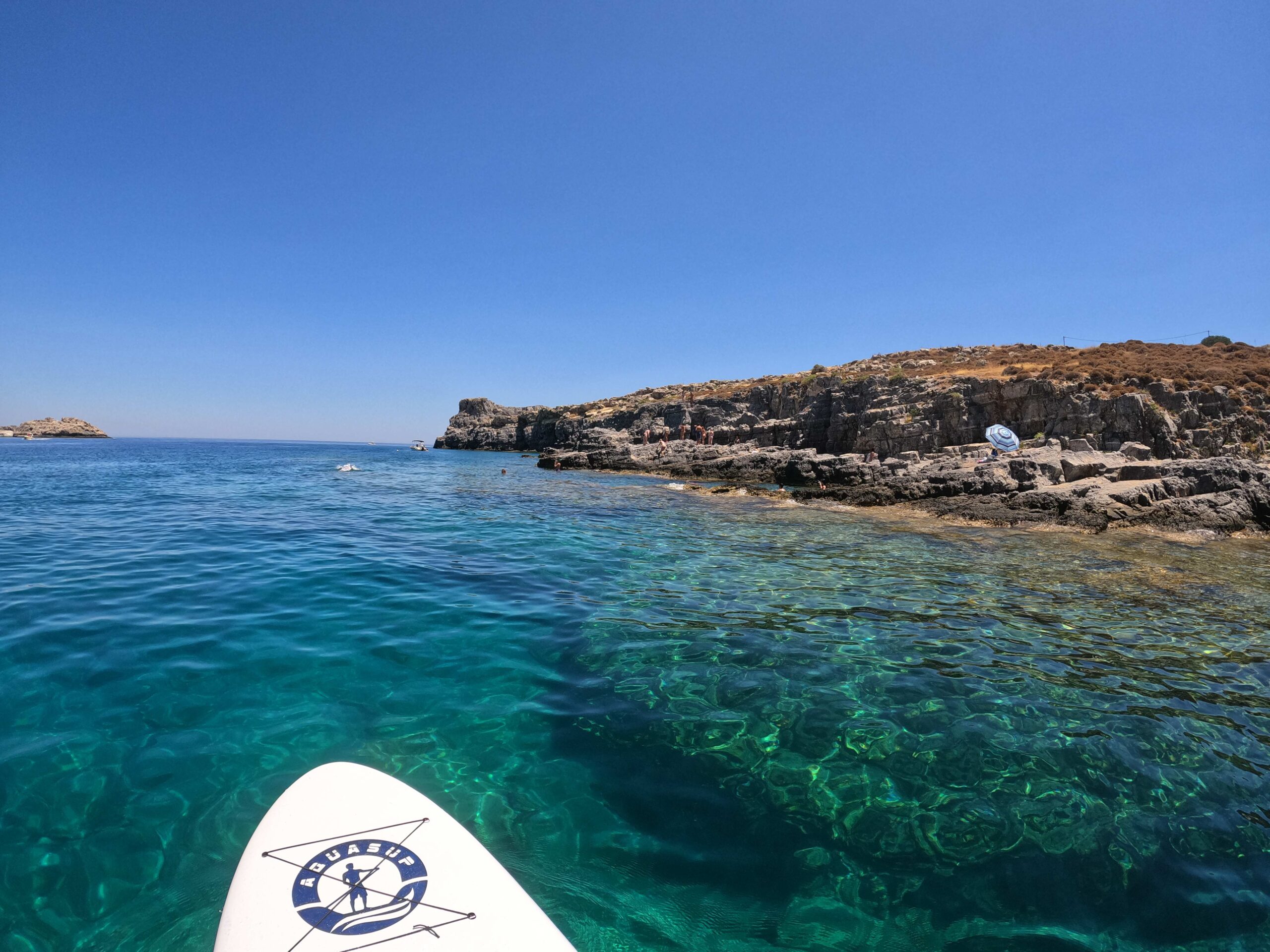 I wish I had an entire day to spend in Lindos and St. Paul’s Bay. The 40 minute scooter ride from our stay in Faliraki, though way too windy for my liking (similar to our other Greek scooter experiences in 2021), was well worth it. Lindos is a frequented tourist village that we didn’t have much time to visit but its cobbled streets were picturesque, full of boutique stores, restaurants and bars. Lindos and Rhodes itself are probably most known for the Acropolis, a temple dedicated to the god Athena, built originally in the 2nd or 3rd century B.C. We didn’t do either, but if we came back to Rhodes, that’s one of the first things I’d do. Instead, we spent time swimming in St. Paul’s Bay, renting paddleboards for an hour and discovering the caves via paddleboard hugging the bay – my favorite place on the island.