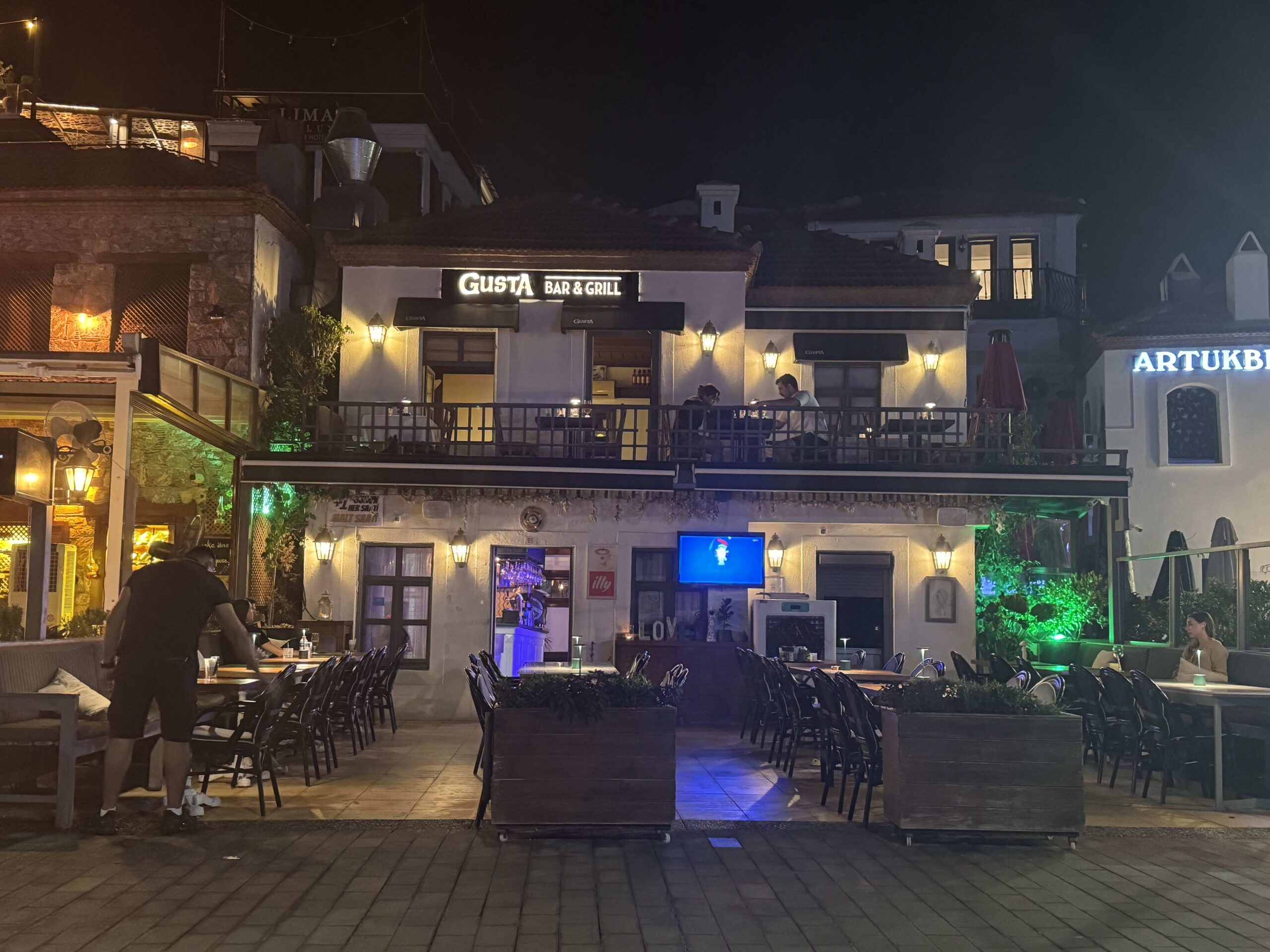 Marmaris: we thought this was a casual town to hang out in before our ferry the next morning. We grabbed my pre- birthday dinner at Gusta Bar & Grill, close to midnight. While the food was delicious and we had seats on the top floor overlooking the boardwalk/harbor, there wasn’t much of a fun vibe. We decided we’d walk the boardwalk a bit further before heading back to our room to sleep. And this walk turned out to be the biggest and best surprise of the entire trip. Unbeknownst to us, but apparently not the rest of the world, Marmaris is a massive party town. A few blocks south of where we had dinner, we walked past one club after another.