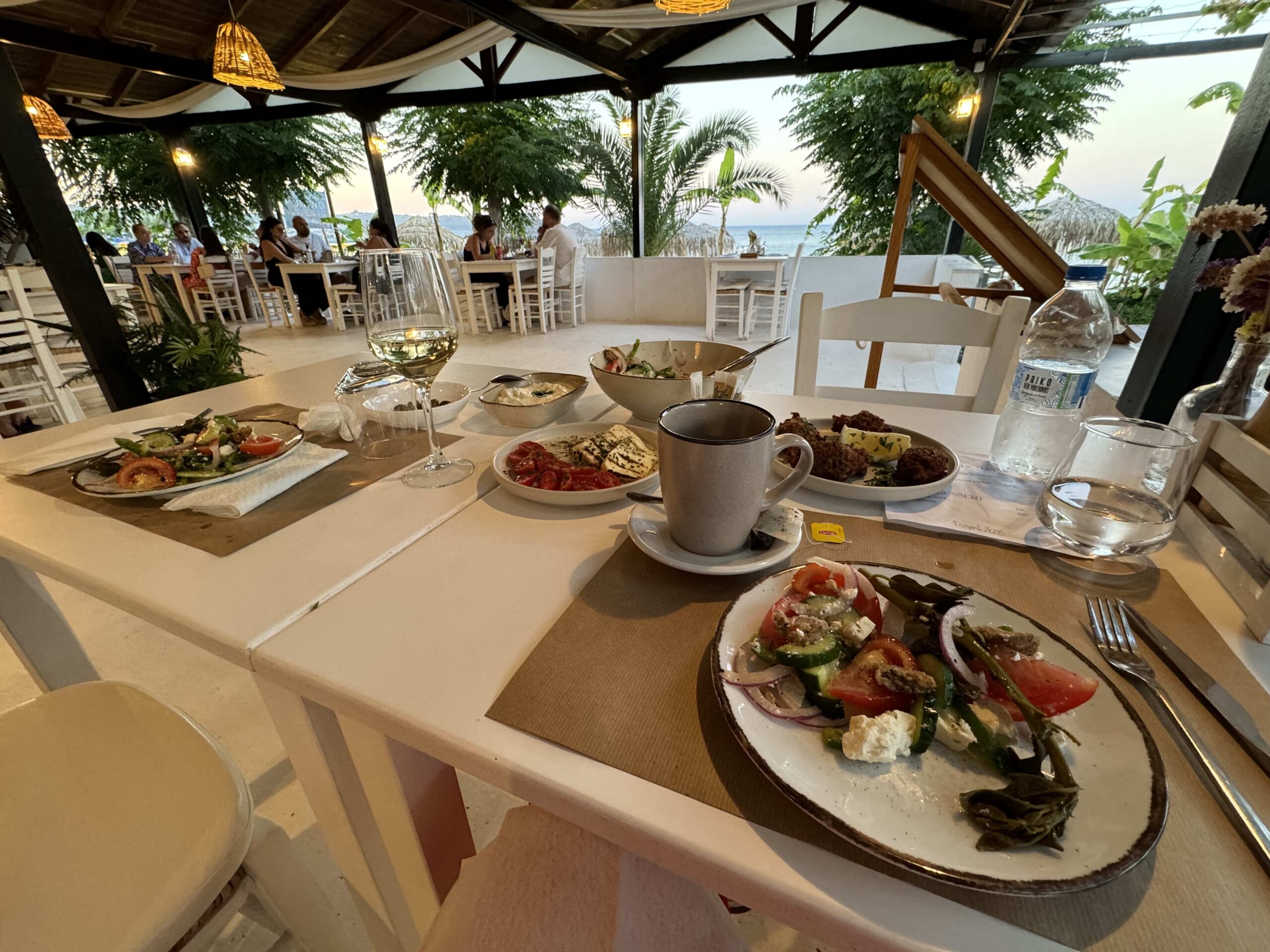 Named after the American actor Anthony Quinn, who bought a piece of the bay after filming a movie here (The Guns of Navaronne), this calm bay is where we spent my birthday relaxing, swimming, enjoying a beach drink and the crystal blue waters. In the evening we drove through the busy night life of Faliraki Bay to get to Tulum Beach Bar Restaurant for the welcome party.